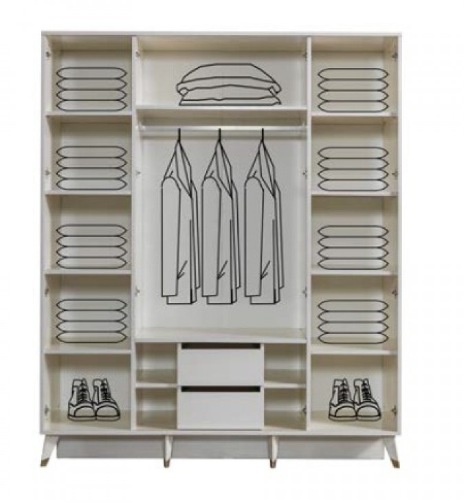 Azzuri Furniture KARAYİP 3 Kapaklı 2 Çekmeceli Gardırop