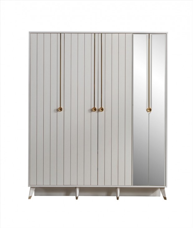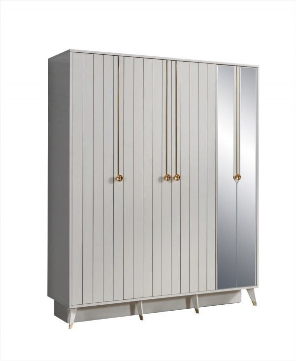 Azzuri Mobilya Perge 4 Kapaklı 2 Çekmeceli Aynalı Gardırop