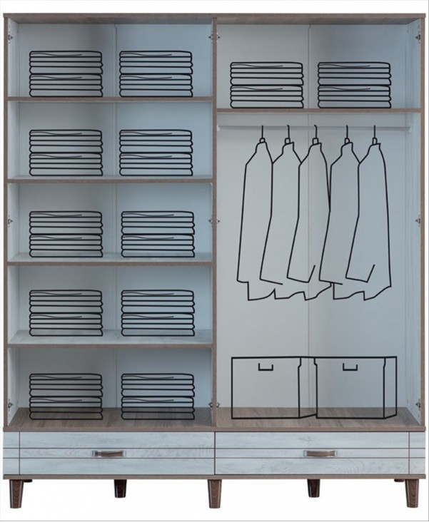 Azzuri Furniture CEYLİN 4 Kapaklı 2 Çekmeceli Gardırop